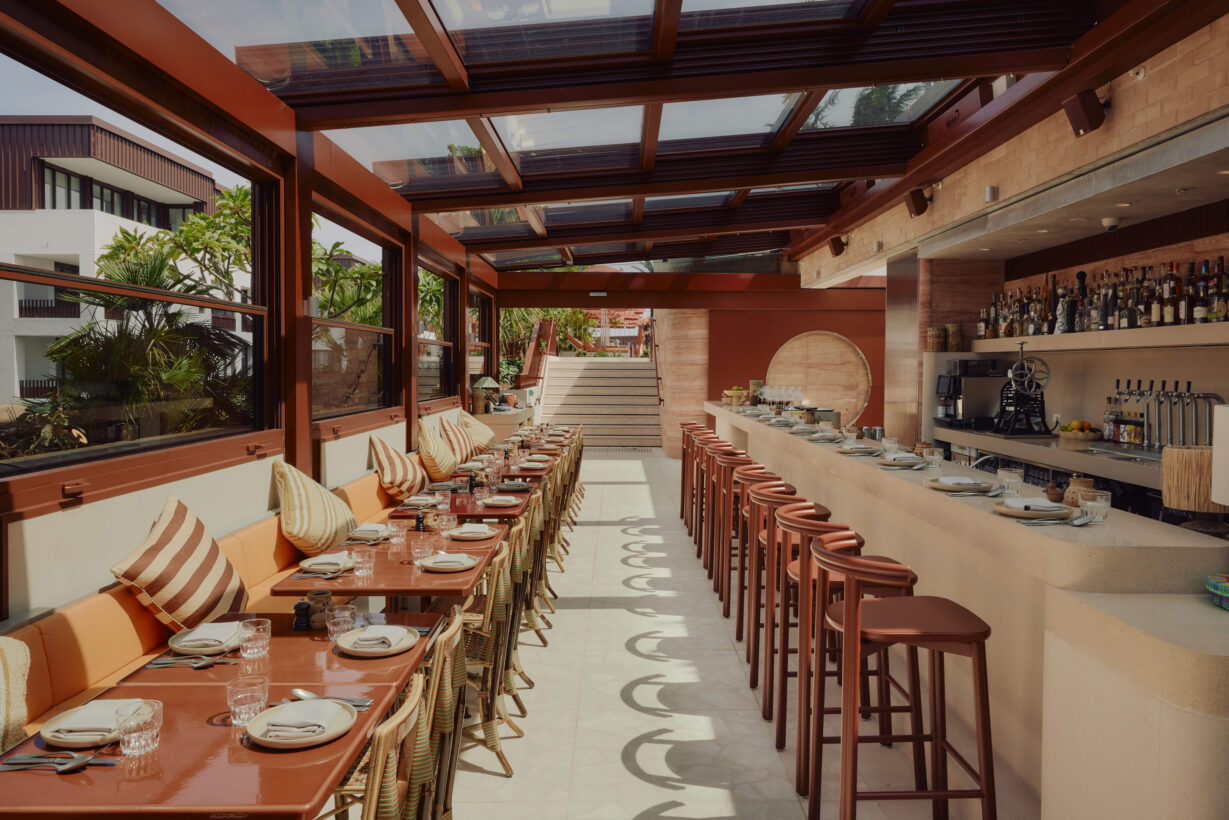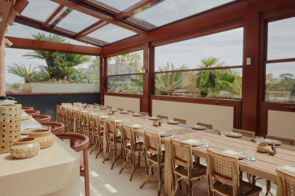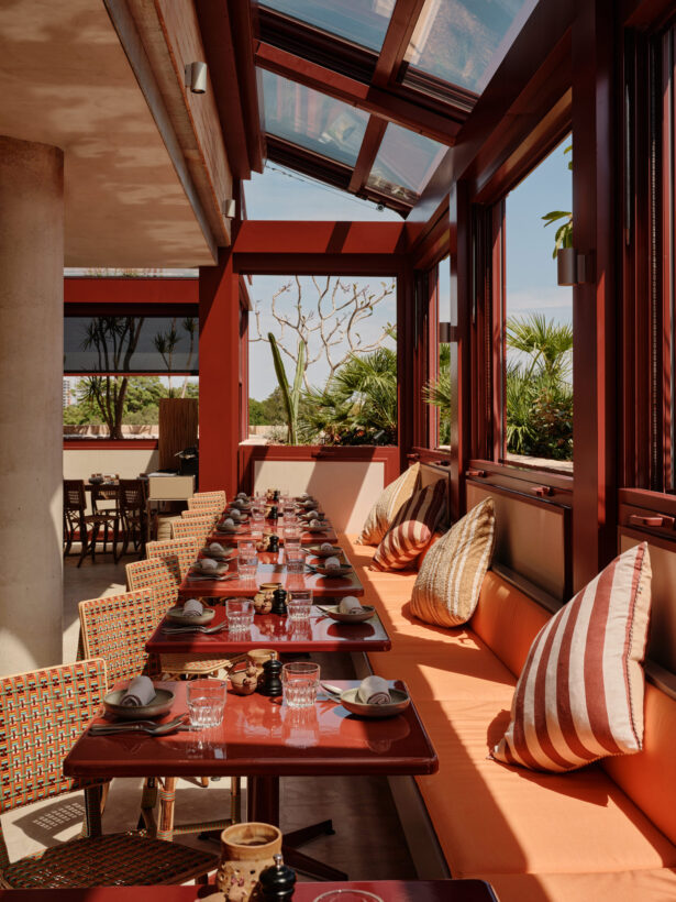 Designed by George Livissianis, the space mirrors the menu. Cayenne terrazzo underfoot, soft banquettes, climbing greenery and skyline views. A rooftop that is tactile, open and just the right amount of poolside cool. From long lunches to icy Margaritas at sundown, everything feels better up here.